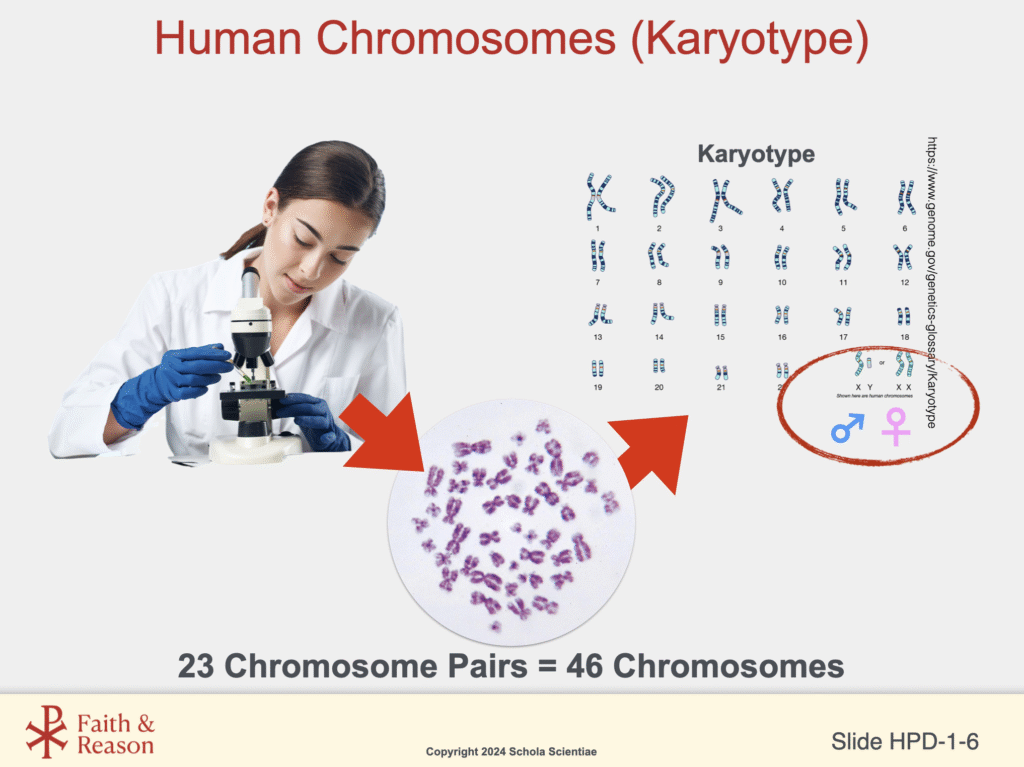 - A karyotype is a chart of all 46 human chromosomes.