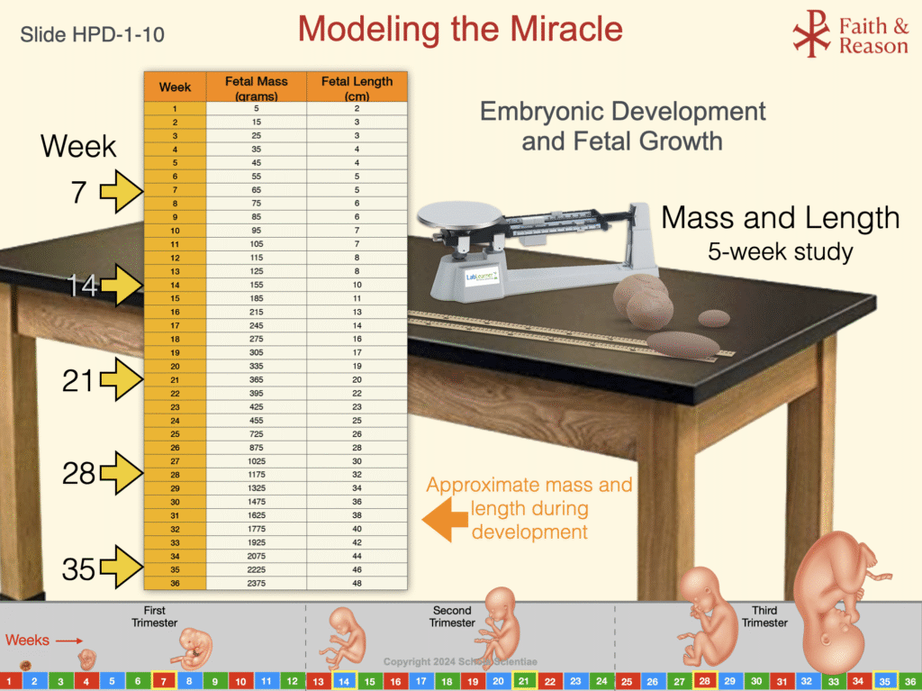 - Students will use scales, rulers, and modeling materials to replicate the approximate mass and length of a fetus at different points in development.