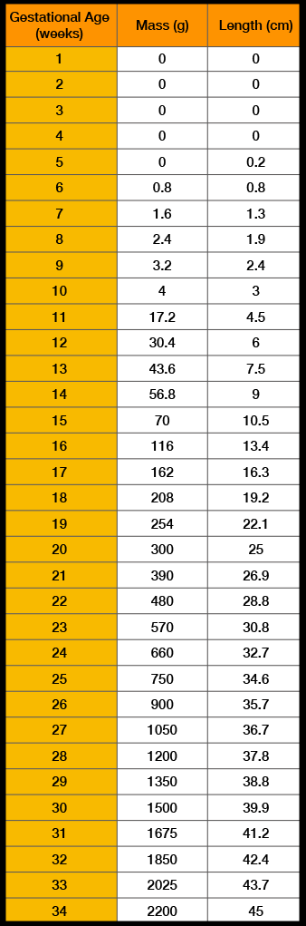- Have students create a clay model of a 7-week embryo (the developing baby is not called a fetus until week 9) and record its mass and length in their Student Guides.